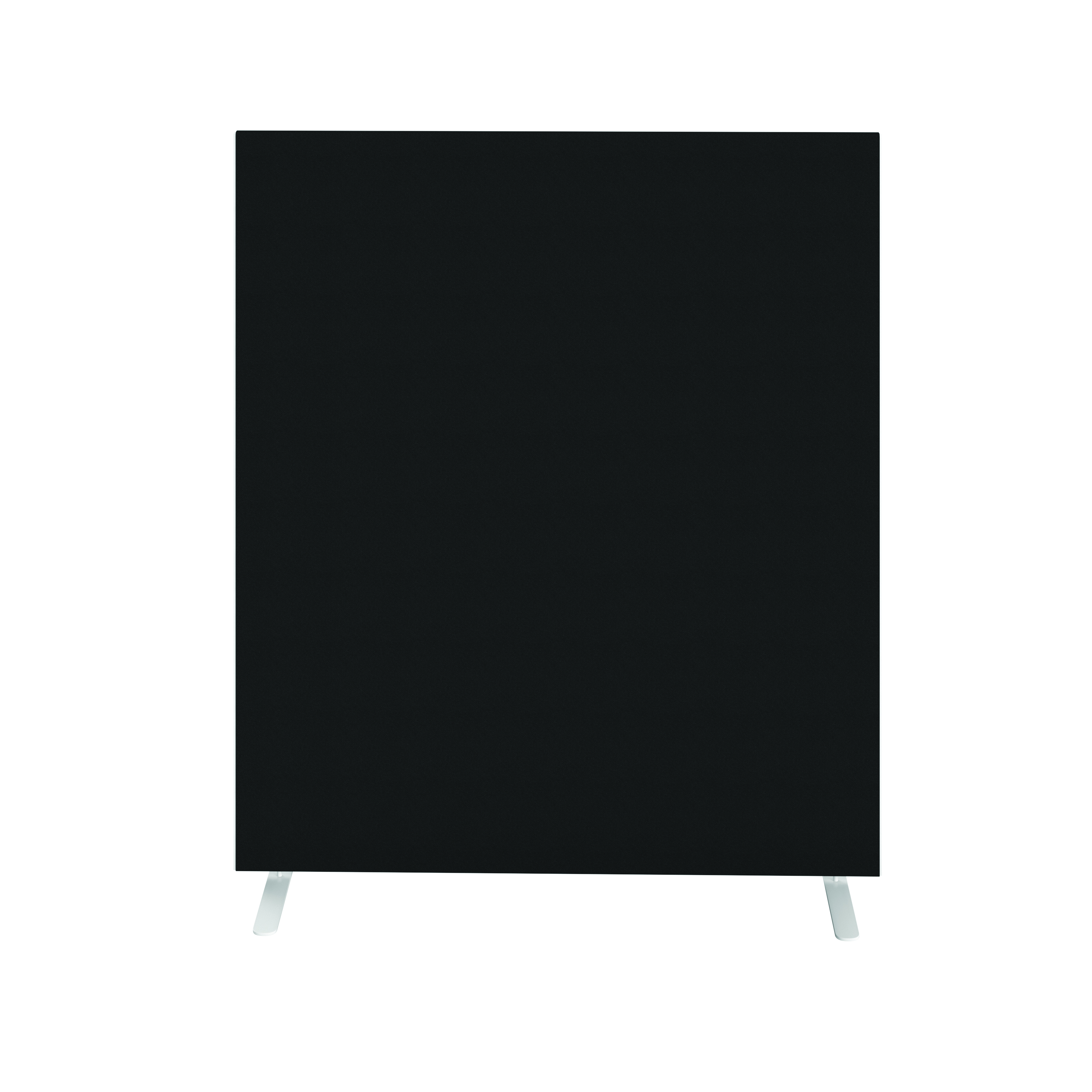 This upholstered floor standing screen is designed to be durable and economic. It is black with a white trim. It measures W1400 x H1600mm.