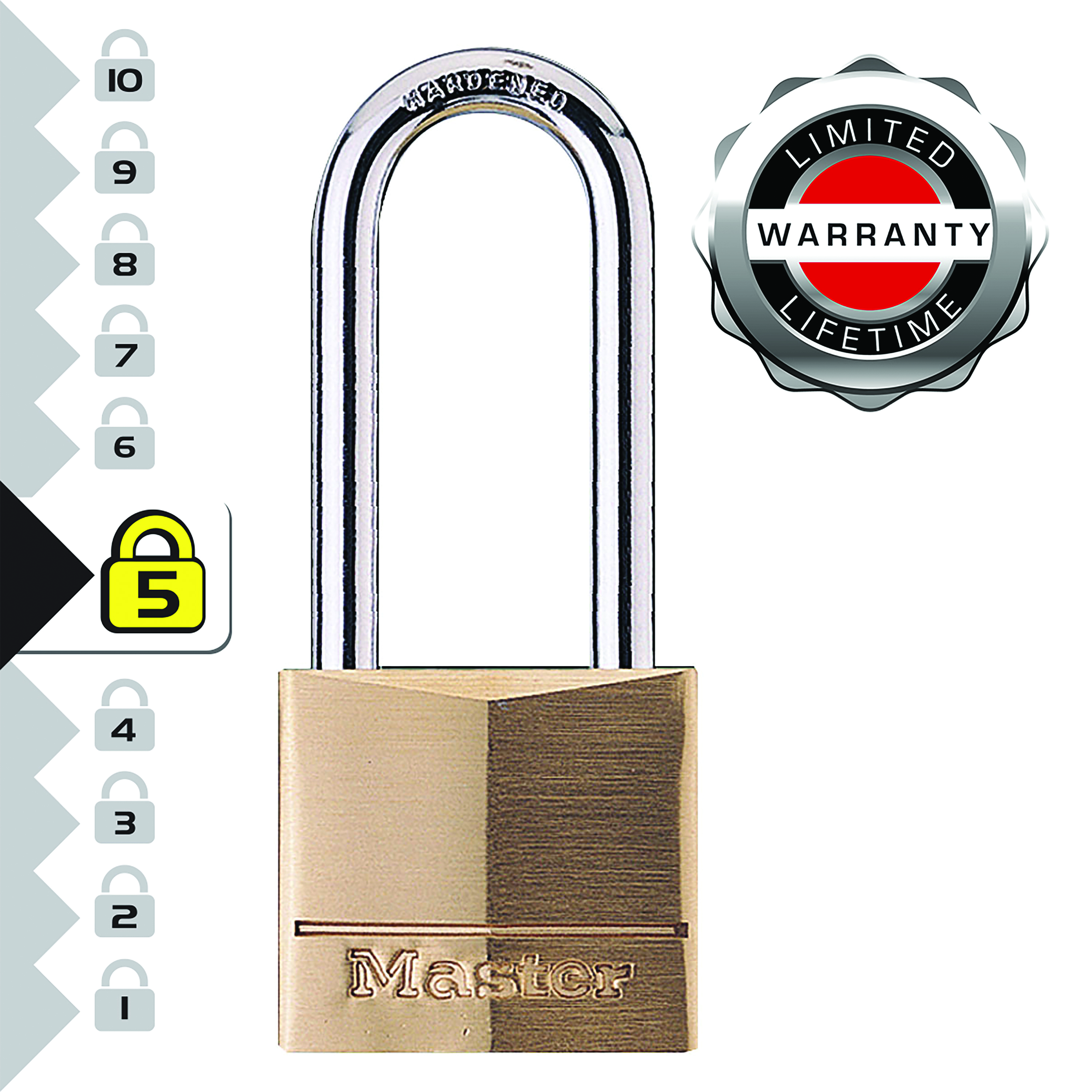 Master Lock 140EURDLH Key Padlock with Brass Body and High Shackle, Gold, 8,9 x 4 x 1,3 cm.