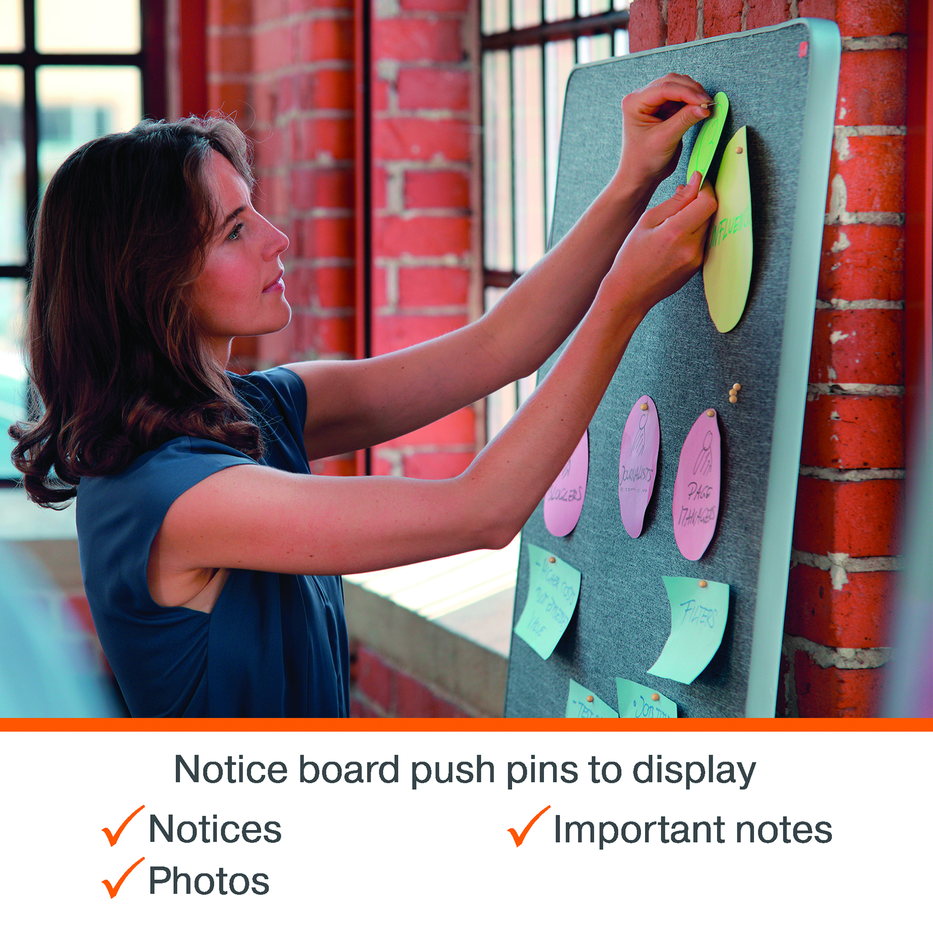 - Push pins for displaying notices, important notes and reminders on notice board surfaces