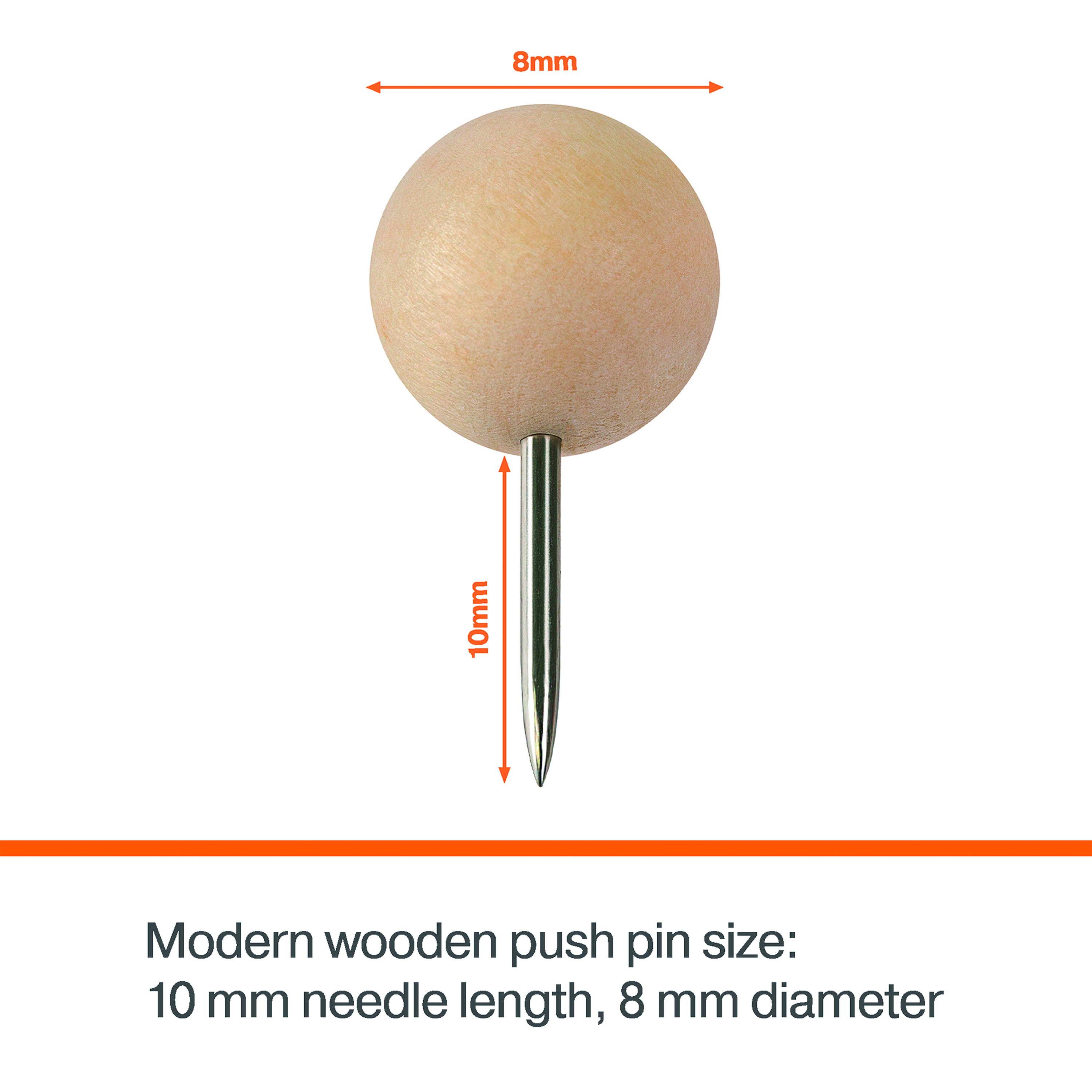 - Wooden push pin size: 10mm needle length, 8mm diameter